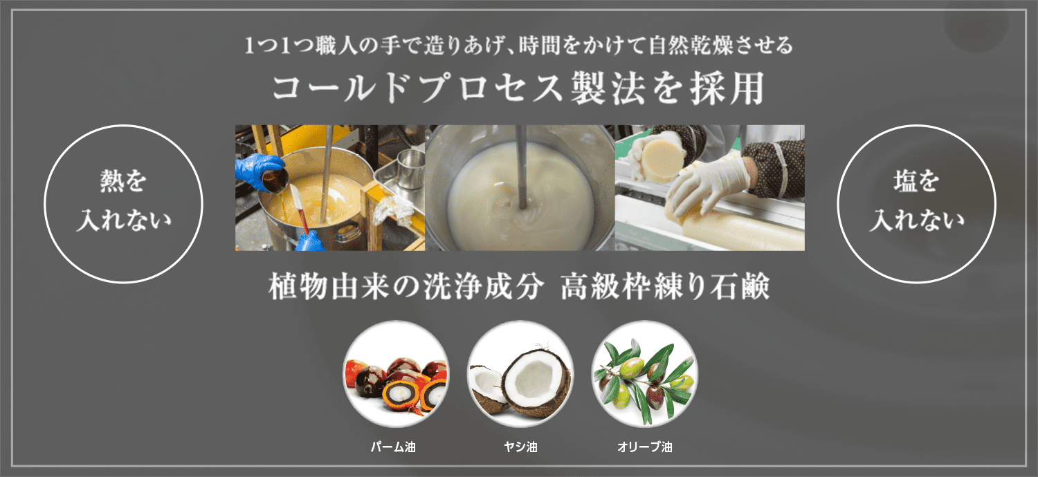 また、この石鹸は機械で大量生産をすることなく、1つ1つ職人の手で作り上げられ、